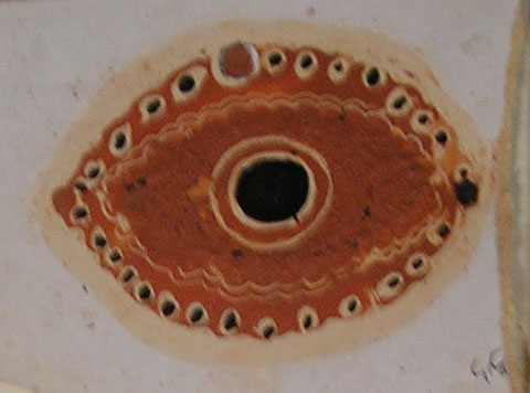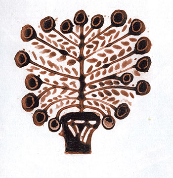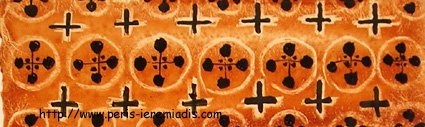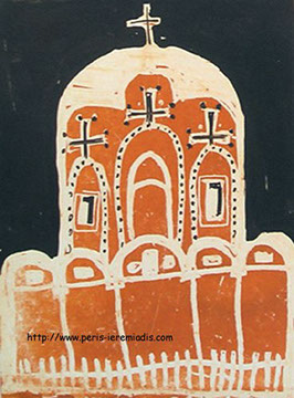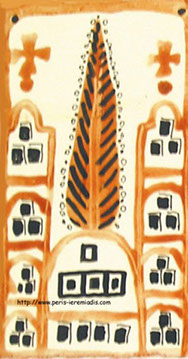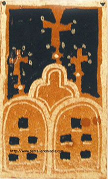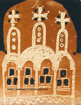 Ces enluminures, entre autres, ont été créées au moment de l'illustration de l'ouvrage sur La vie des Saints aux Editions Indiktos dont elles viennent ponctuer les pages et les chapitres. Ces miniatures ont été réalisées avec de la terre sur papier. Certaines s'inspirent des "tamata" (ex-voto en métal découpé).